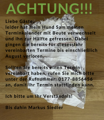 Bitte teilen Sie Ihre Wünsche bei der Terminvereinbarung mit.